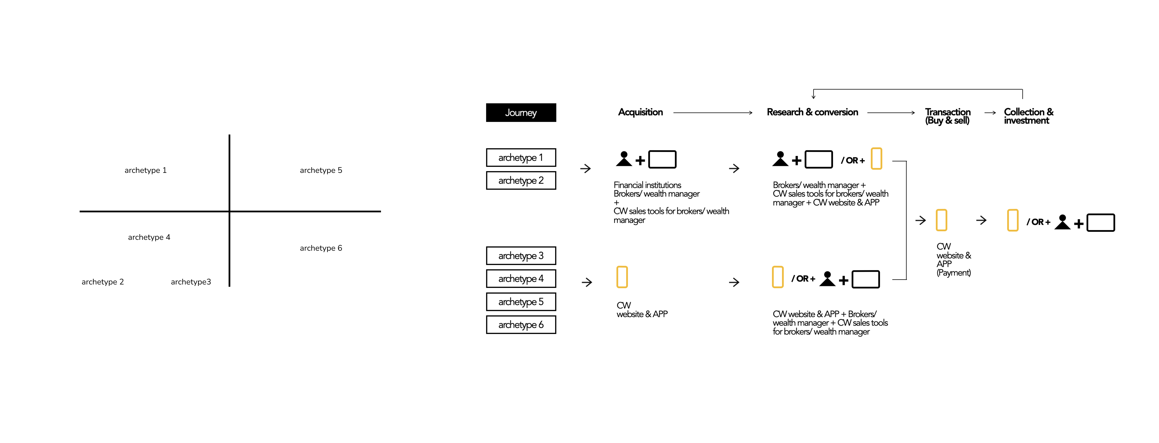 + Defined core user archetypes and their decision journeys
