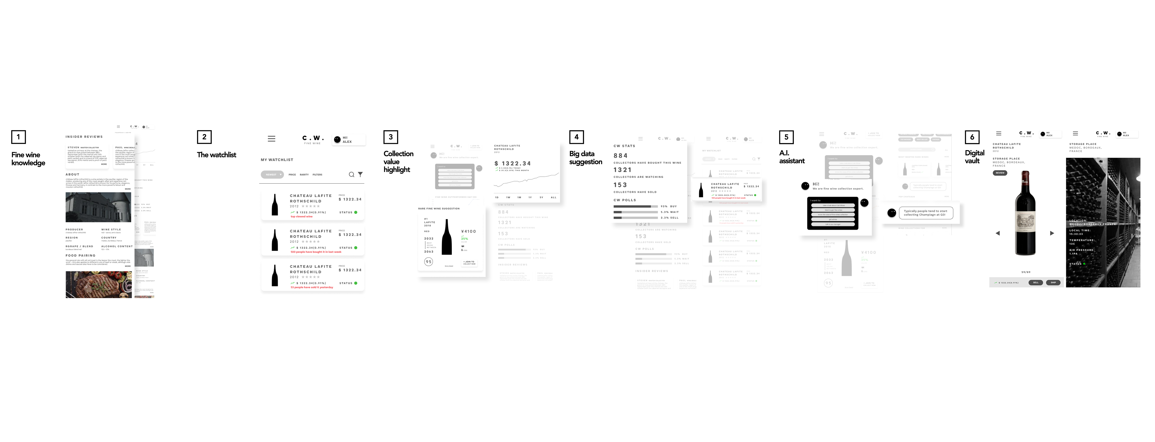 Designed a feature set aligned to investor needs to provide accessible, standardized and customized fine wine collecting experience β from personalized watchlists and value tracking to AI wine suggestions and secure vaults β blending clarity, control, and data confidence.